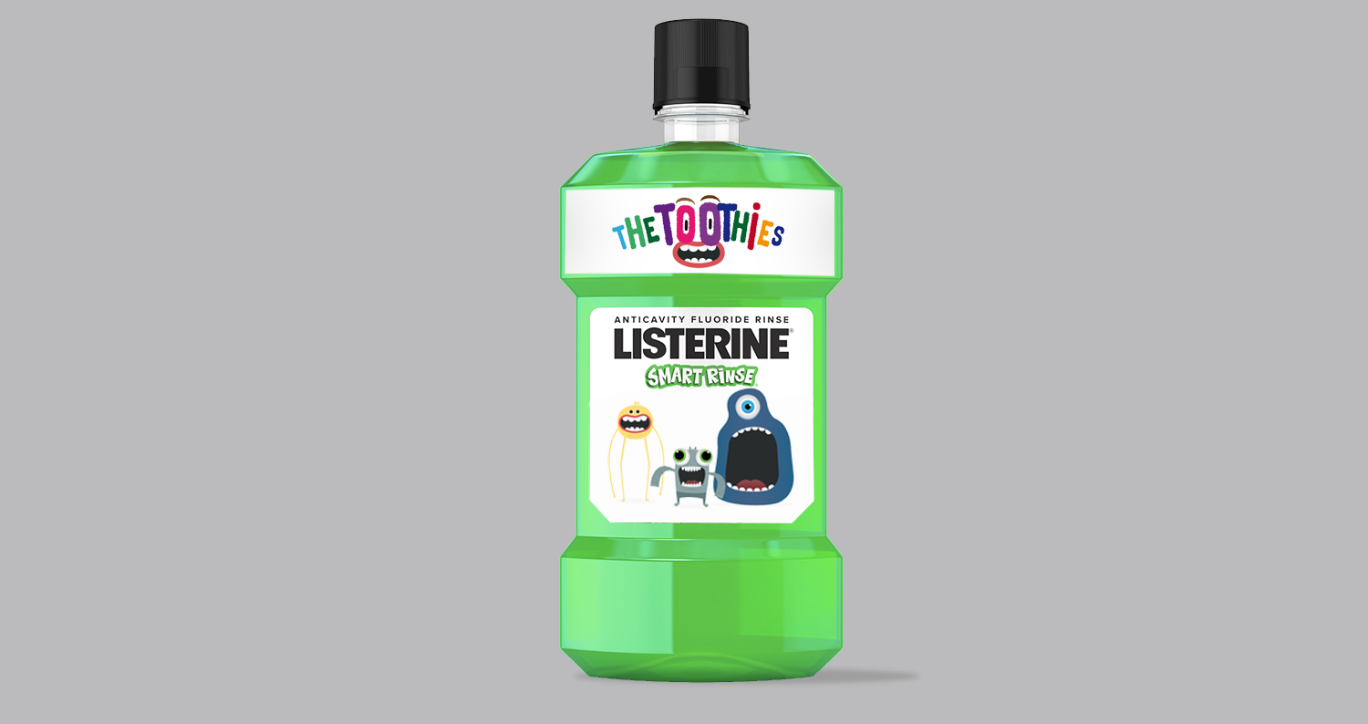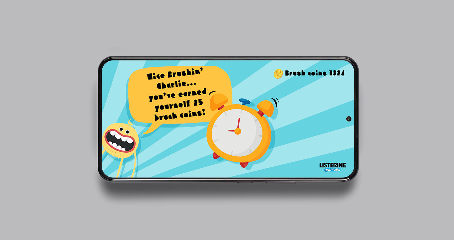 Listerine Smart Rinse is mouthwash for kids, we wanted to let kids (and parents) see that using mouthwash is an important part of looking after their teeth and make Listerine Smart Rinse part of their routine. To do this we had to make it seem fun to kids, and worthwhile to mum.