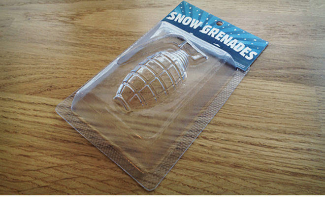 I hate this brief. It always arrives in the first week of December. It’s always sold as a chance to win an award. And 9 times out of 10 it comes to nothing as people realise there’s not time. That said I like this one I came up with. Moulds to make snow grenades, after all nothing say Christmas like an explosive device.